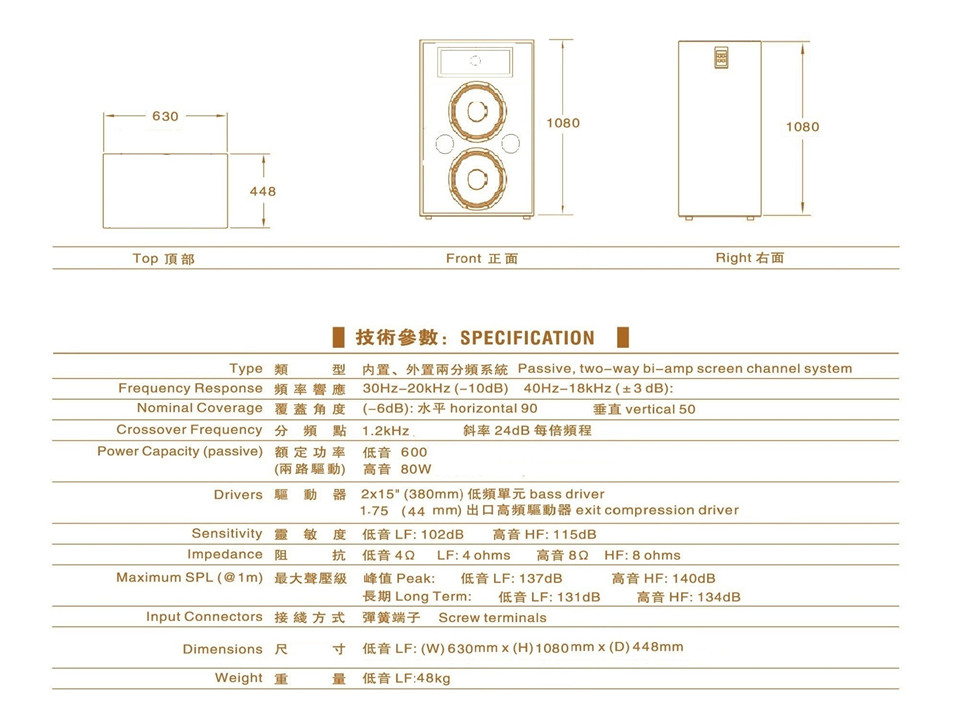 15600W兩分頻電影主揚聲器