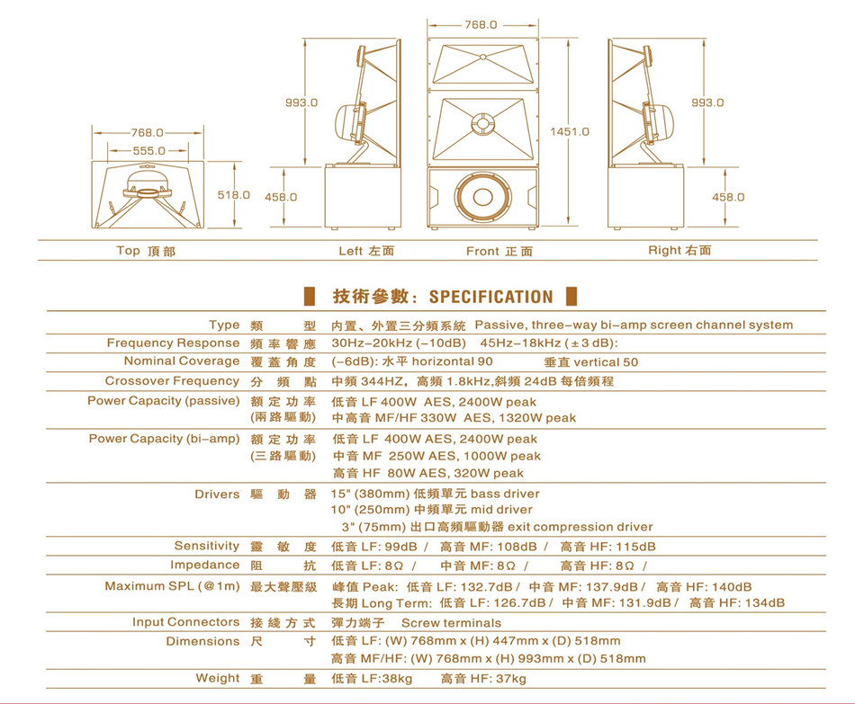 单15寸400W三分频电影主扬声器