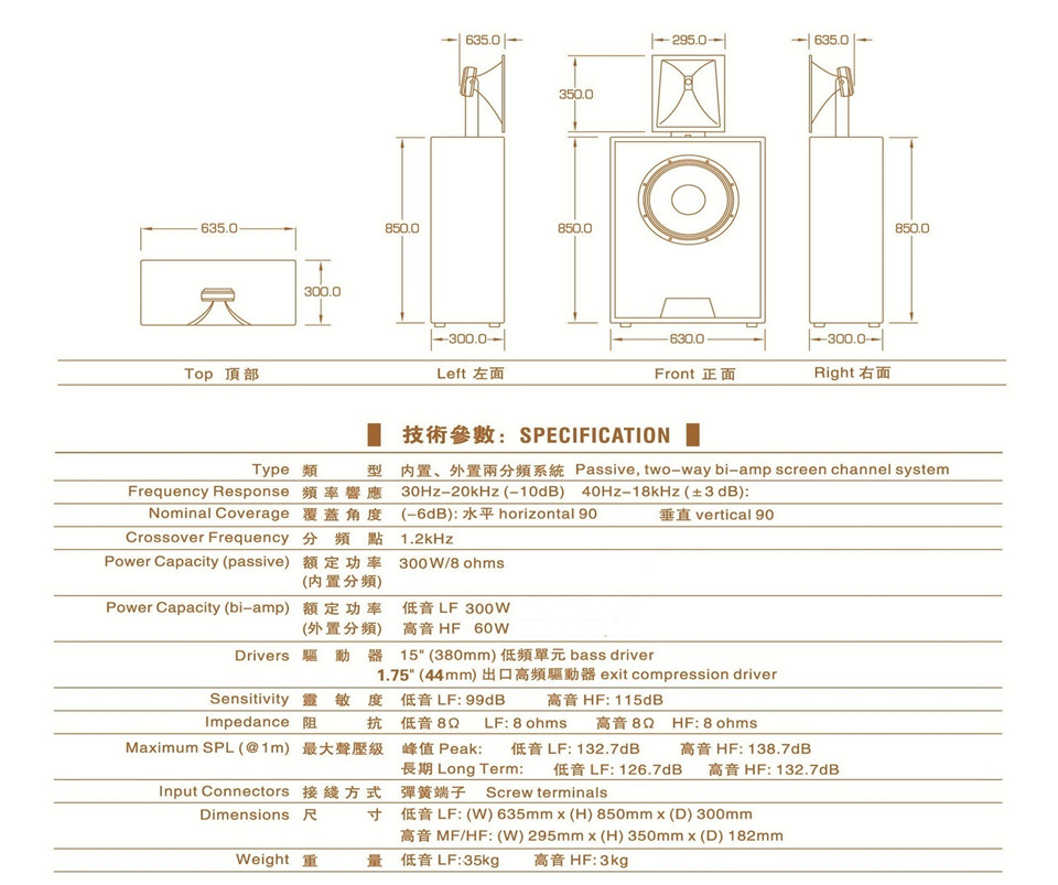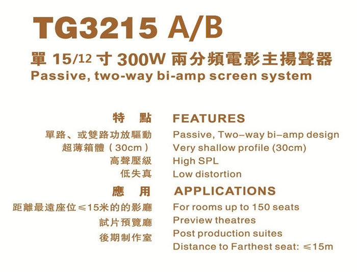 iG32l5A/B單15/12寸300W兩分頻電影主揚聲器